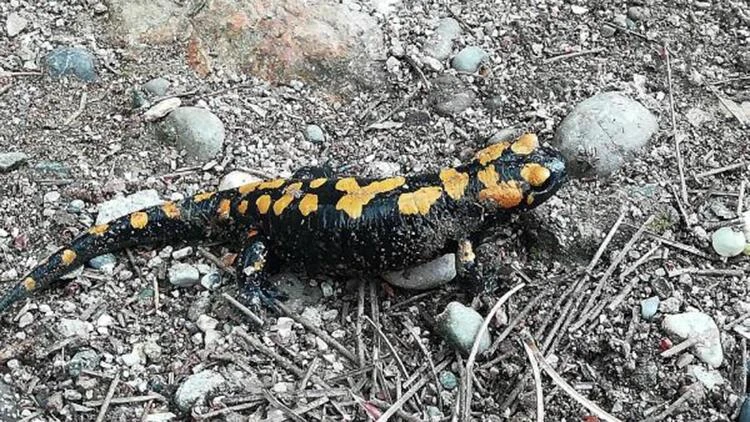 Adana Pozantı'da yürüyüş yapan bir vatandaşi Türk semenderi olarak bilinen sarı benekli semender işle karşılaştı. Nesli tükenmekte olan semenderi her yıl bu mevsimde, ilçede gördüğünü belirten vatandaş, hayvanın fotoğraflarını çekti.