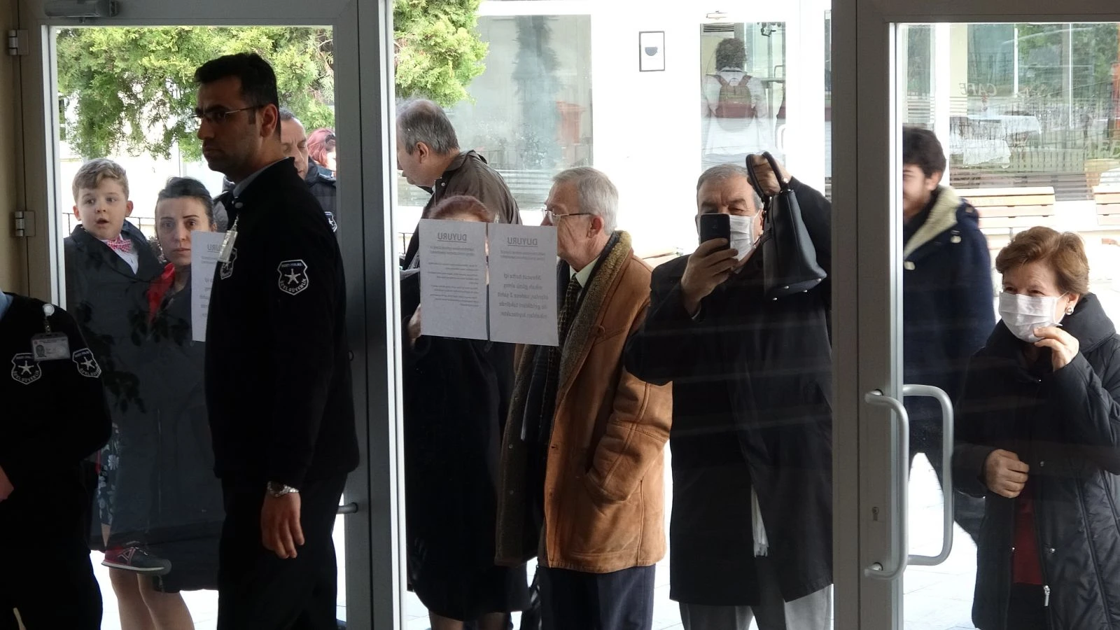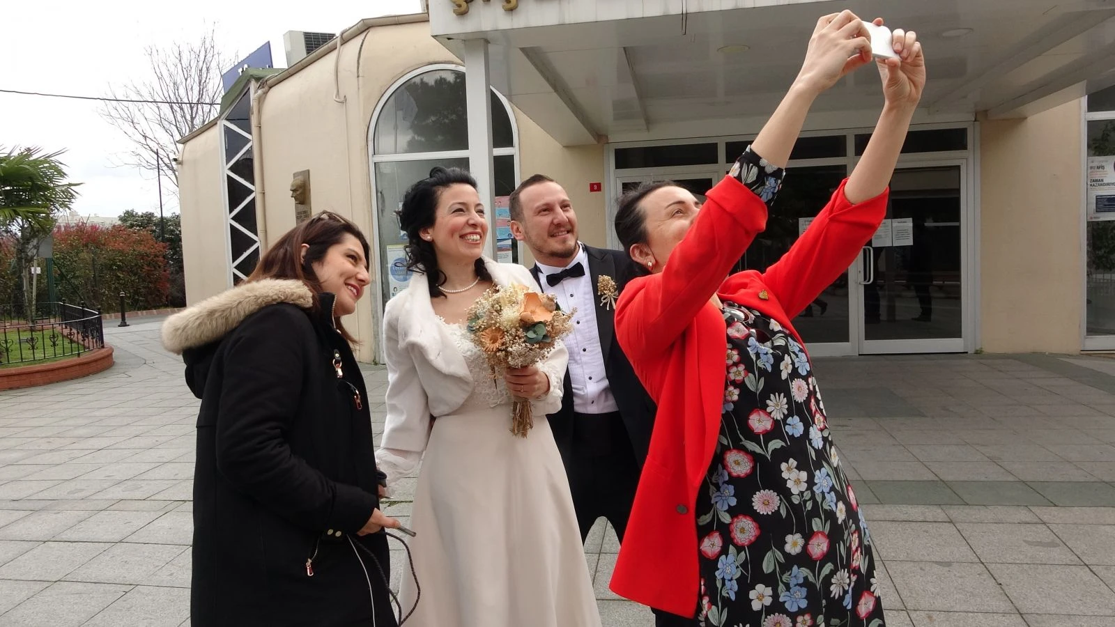 Şişli’de İnci Kıran ve Muhittin Tuğrul Peker çifti, davetliler ve nikah şahitleriyle beraber Evlendirme Dairesine geldi. Korona virüs yasağı nedeniyle davetliler içeriye alınmadı. Çift içeriye alındıktan sonra gelinin arkadaşı çiftin eline dezenfektan sıktı. Ardından ise çiftin nikahı kıyıldı.