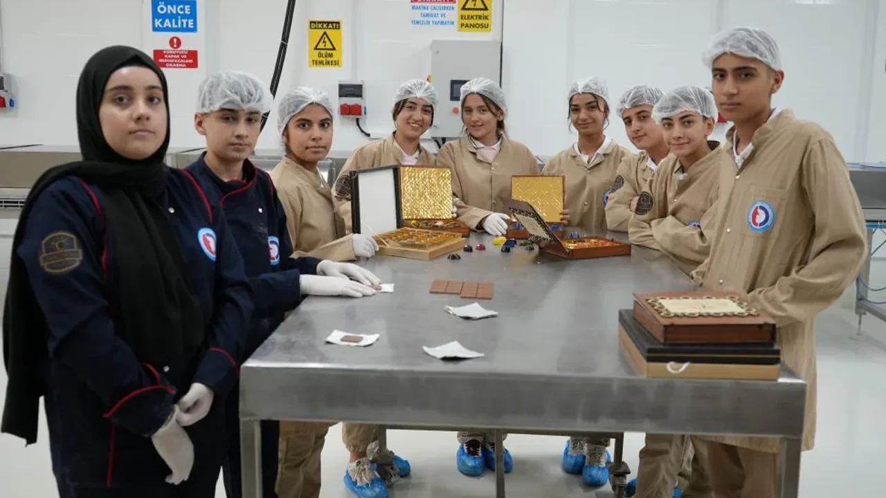Öğrenciler tarafından okulda üretilen; Dubaili çikolatalardan beyaz, bitter, karamelli ve fıstıklı çeşitlere kadar birçok tür, Milli Eğitim Bakanlığı’nın desteğiyle kazandırılan atölyede profesyonelce imal ediliyor.