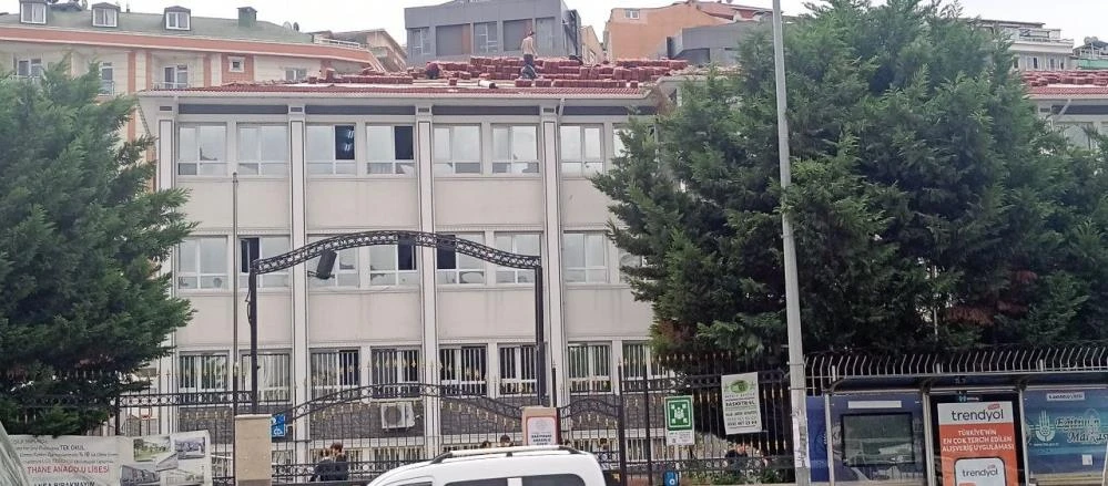 Kağıthane Anadolu Lisesinin çatısında yenileme ve onarma çalışmaları yapan işçiler, hiçbir güvenlik önlemi almadan çalışmaya başladı. İşçilerin önlemsiz çalışması çevrede bulunan vatandaşların da dikkatini çekti.