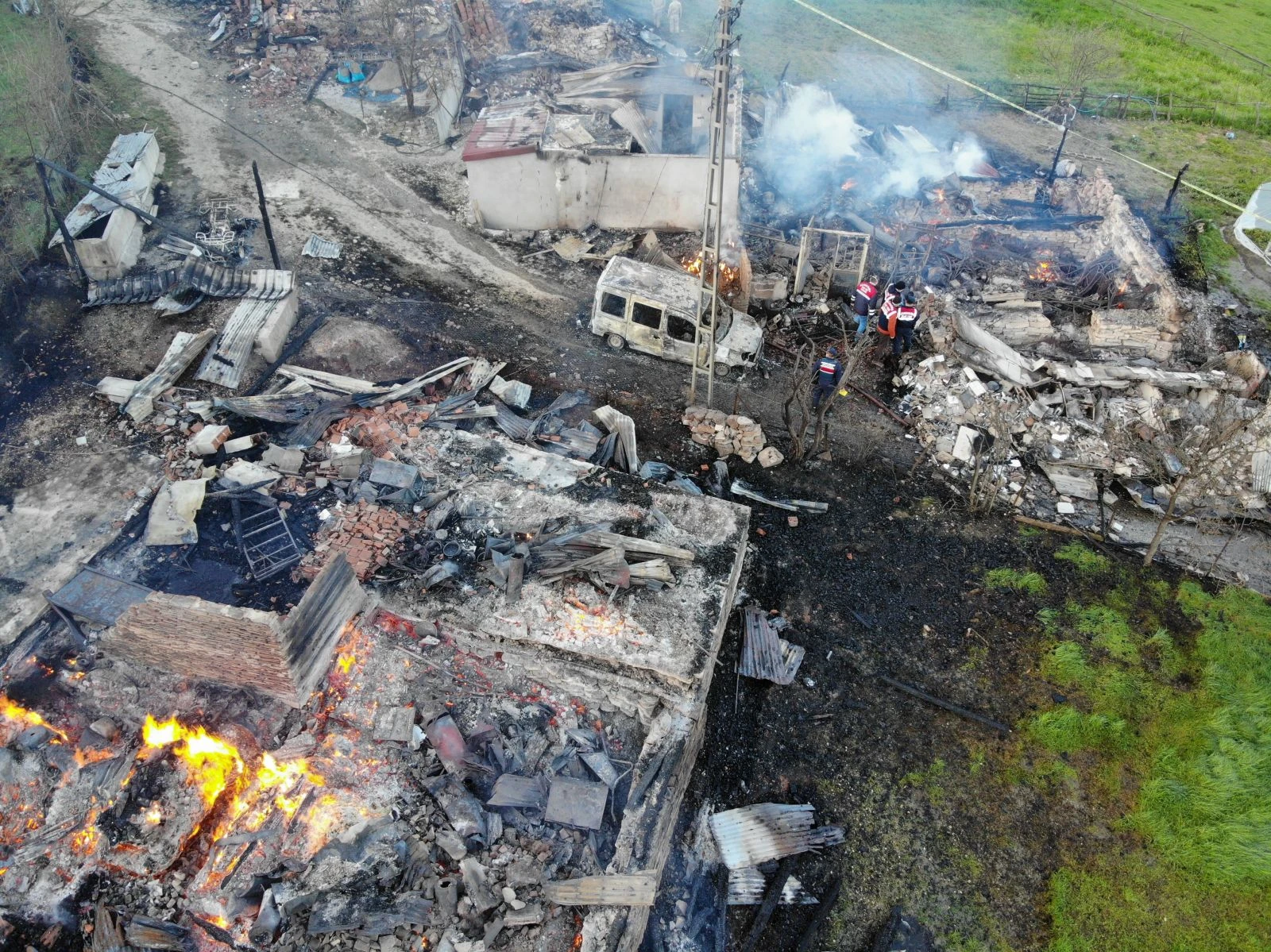 2 kişinin hayatını kaybettiği yangın, itfaiye ile Orman İşletme Müdürlüğü ekiplerinin müdahalesiyle kontrol altına alındı. Yangının boyutu gün ağarınca ortaya çıktı. Havadan görüntülenen yangın yerinde evlerin enkazından başka bir şey kalmadı.