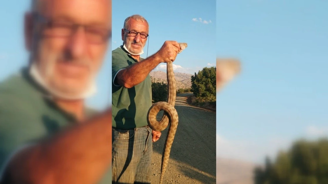 Şaban Şahin, "Öğle saatlerinde saman doldurmak üzere bahçeye gittim. Samanı çuvallara doldururken aniden karşıma çıktı. Bana saldırmaya çalıştı. Ama yavaş hareket ediyordu. Bana zarar veremeden bir anda boğazından yakaladım. Bu yılan türü bölgemizde görünüyor, genelde hareketlerinin yavaş ve saldırgan bir tür olduğunu biliyorum" diye konuştu.
