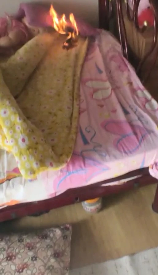 Yorganların tutuştuğu yangına ev sakinleri müdahale ederek söndürmeye çalıştı. Bununla yetinmeyen baba C.P. bu sırada evin damına çıkıp, güneş enerji sistemine zarar verdi.