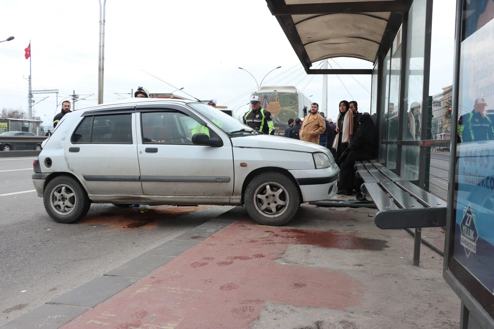Savrulan otomobil, Halkevi mevkisinde durakta bekleyen Mutlu Kaya idaresindeki 41 J 7030 plakalı özel halk otobüsüne arkadan çarptıktan sonra yolcuların bulunduğu durağa girdi. Bu sırada otobüs bekleyen yolcuların durumu fark ederek kaçmasıyla şans eseri kazada yaralanan olmadı.