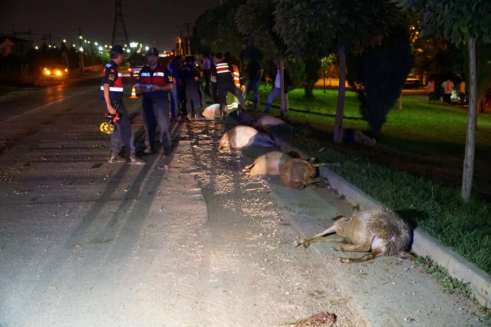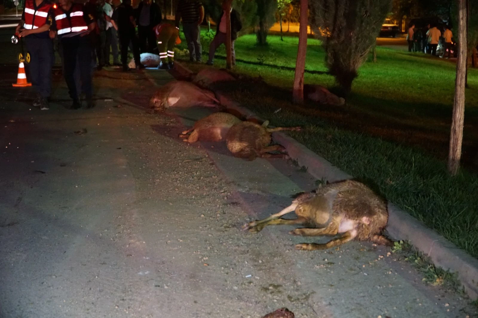 Kazada aşırı hızlı olduğu öne sürülen otomobilin sürücüsü Ahmet Furkan T. ile çoban Necati A. yaralanırken, 10 koyun ise yol kenarına savrularak telef oldu.