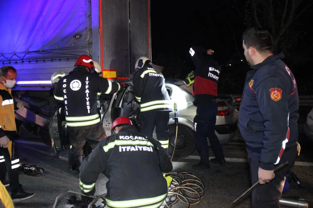 Kocaeli'de tırın dorsesine çarpan otomobil, metrelerce sürüklendi. Otomobilde sıkışan sürücüyü kurtarmak için itfaiye ekipleri canla başla mücadele verdi. Güçlükle araçtan çıkartıldıktan sonra hastaneye kaldırılana sürücünün sağlık durumunun ağır olduğu öğrenildi.