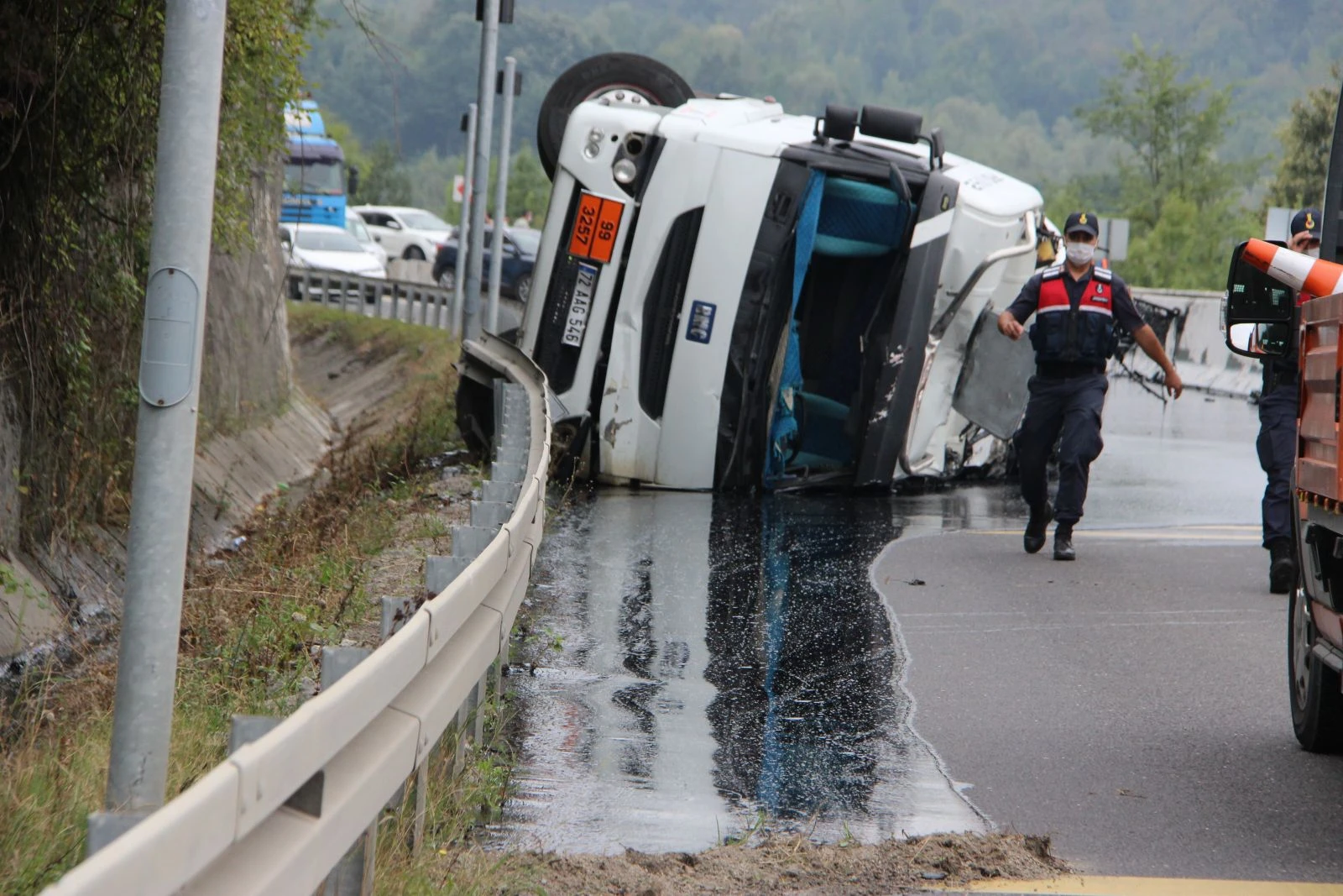 Bolu Dağı yolu D-100 Karayolu Düzce kesimi, Ankara'dan İstanbul istikametine gitmekte olan 27 AAG 546 plakalı BMC marka zift yüklü tanker, kontrolden çıkarak önce orta refüje daha sonrada 14 NA 604 plakalı Opel marka otomobile çarparak devrildi. Kazada 3 kişi yaralanırken, devrilen tankerdeki ziftin yola dökülmesi sonucu yol tamamen zift ile kaplandı. Zift ile kaplanan yol iki yönlü trafiğe kapanırken, uzun araç kuyruklarının olduğu yoldaki sürücüler alternatif yollara yönlendiriliyor.