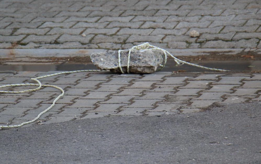 Savcı ve olay yeri ekipleri inceleme yaparken, ölüme sebebiyet veren taş ile bir ucu elektrik direğine bağlı pankart çözülerek polis tarafından emanete alındı. Olayla ilgili soruşturma sürüyor.