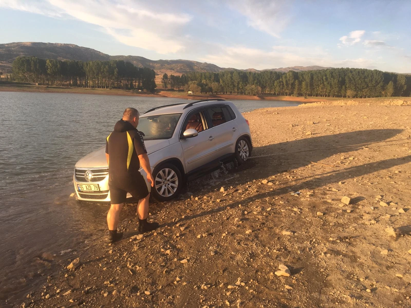 Park halindeki araç bir anda gölete doğru kayarak batmaya başladı. Çevredekiler durumu jandarmaya bildirdi.