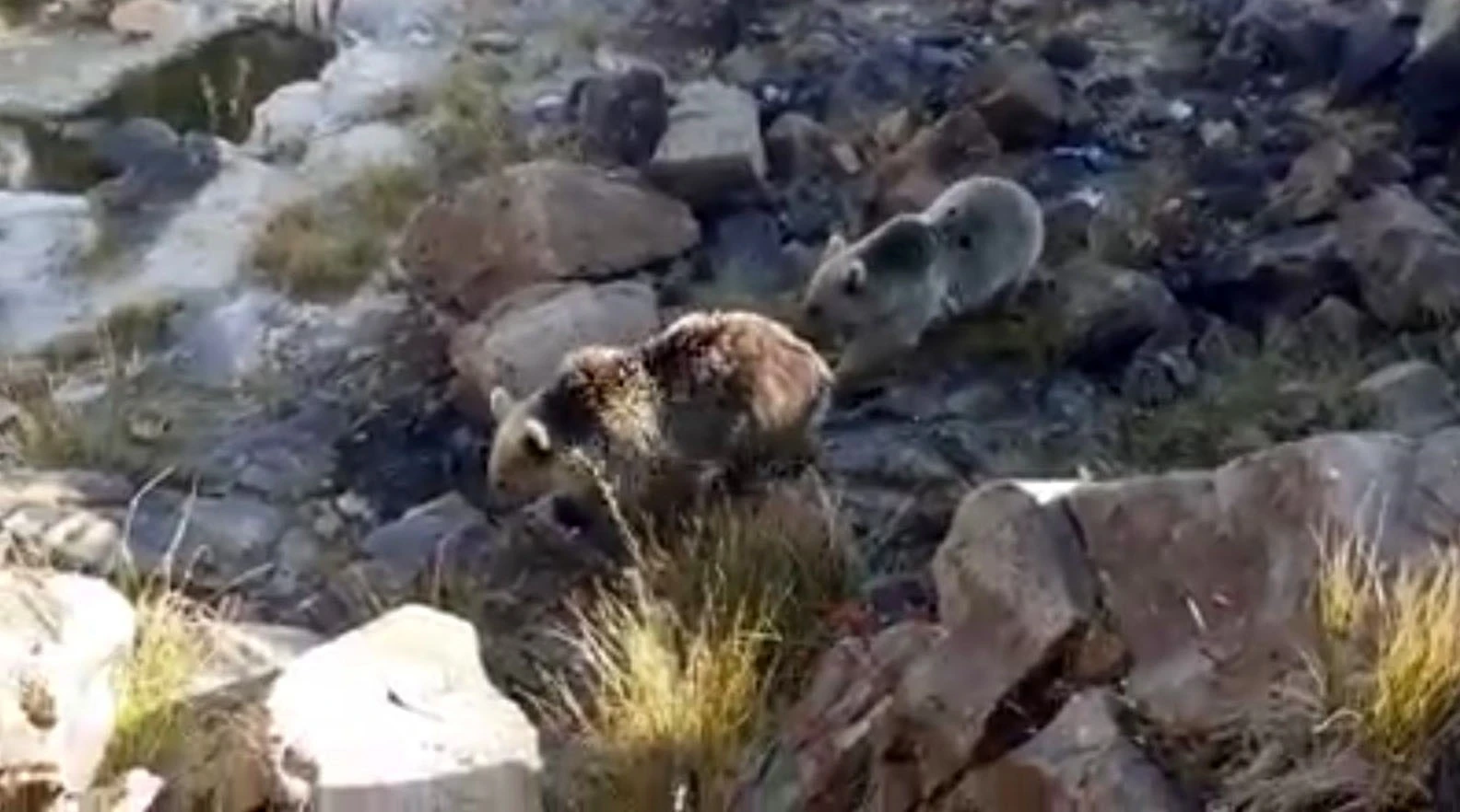Tavırları ve şirinlikleri ile adeta Nemrut Krater Gölü'nün maskotları haline gelen minik ayı yavruları, gezi ve piknik amaçlı krater gölüne gelen vatandaşlara sürpriz ziyaretler yapmaya devam ediyor.