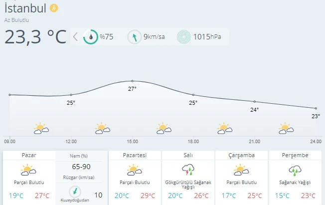 İstanbul: Parçalı ve çok bulutlu, akşam saatlerinden itibaren yerel olmak üzere aralıklı sağanak ve gök gürültülü sağanak yağışlı 27