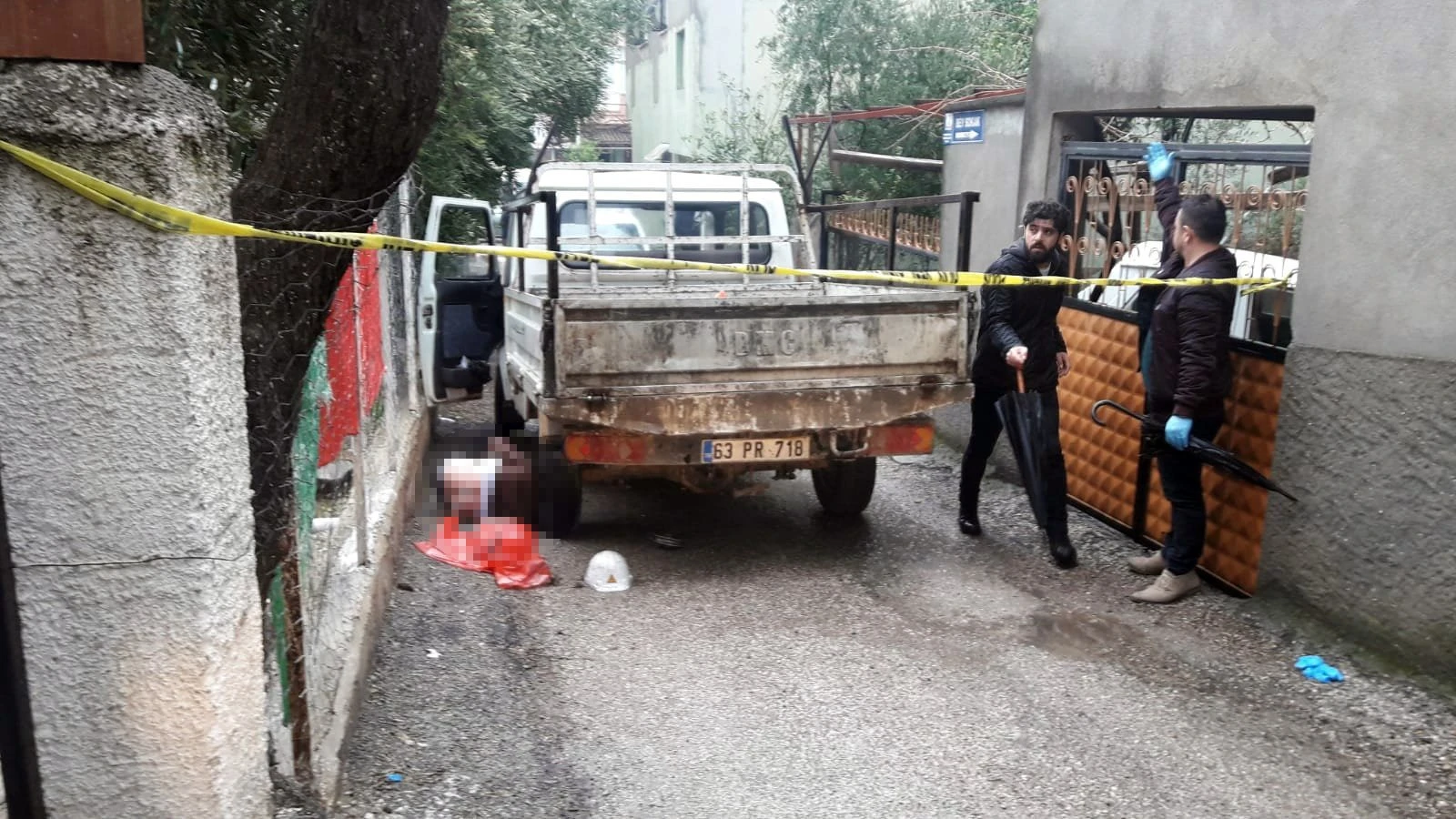 Türkeli Mahallesi Bey Sokak üzerinde park halinde duran 63 PR 718 plakalı kamyonetin arka tekerleğinin yanında yerde hareketsiz şekilde yatan bir kişiyi gören mahalle sakinleri durumu hemen polise bildirdi.