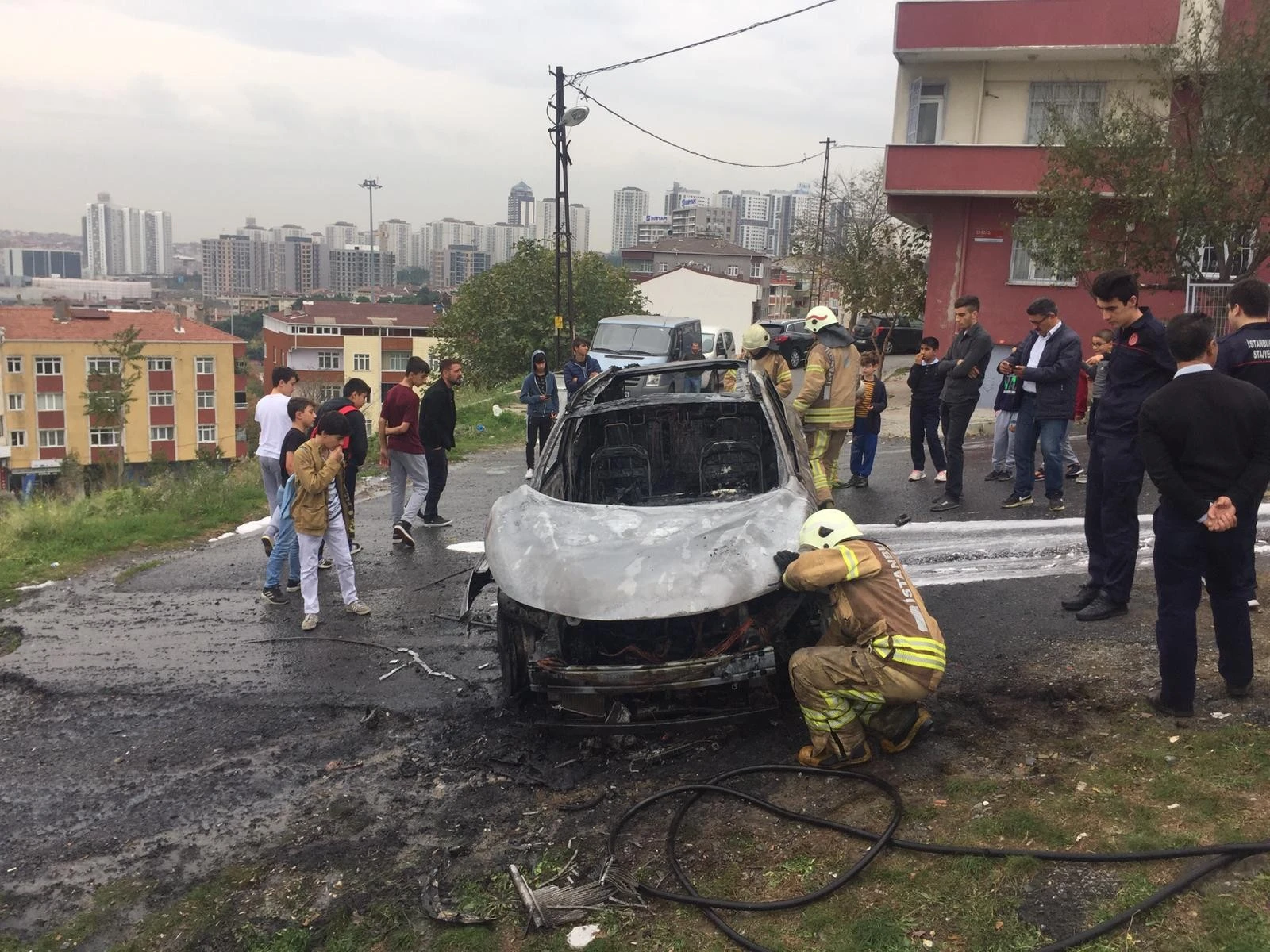 Otomobil park halindeyken çıkan yangının şüpheli bulunması üzerine itfaiye ekipleri sabotaj ihtimali için inceleme yaptı. Polis ekipleri de çevredeki vatandaşlarla konuşarak yangının nedenini bulmak için çalışma yaptı.