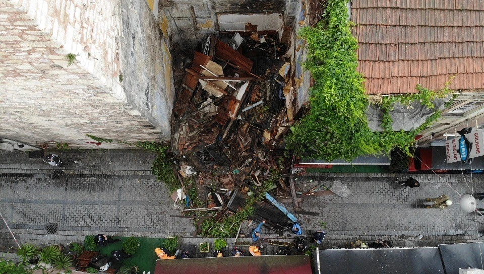 Fatih Cankurtaran'da kullanılmayan ahşap bir bina, kuvvetli sağanağın da etkisiyle çökerken, Güngören'de ise yağış nedeniyle asfalt çalışması yapılan yolun bir bölümünde çökme yaşandı.
