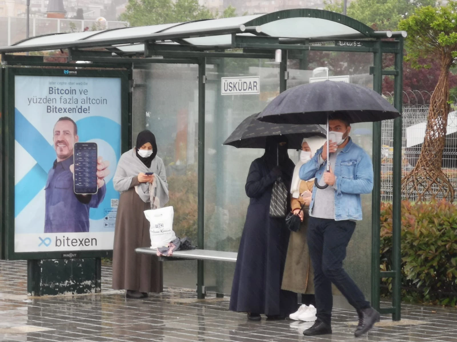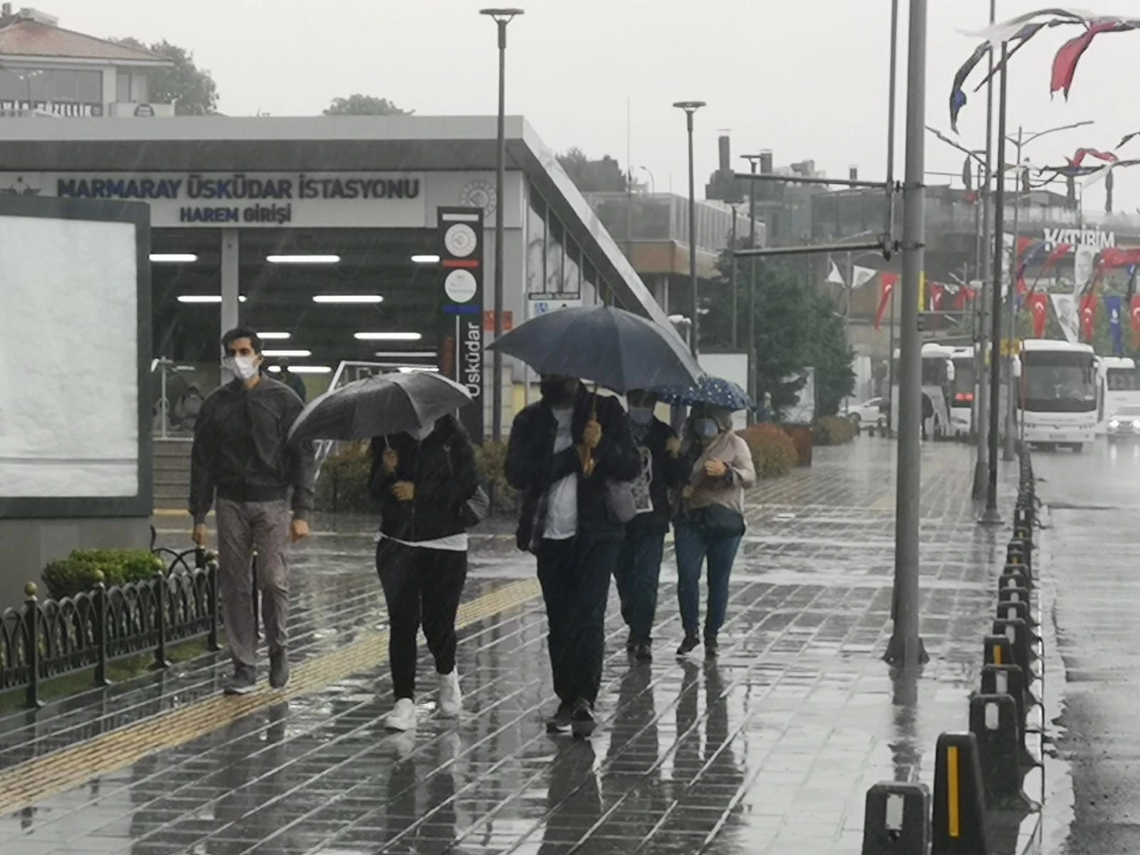 Yağmura hazırlıksız yakalanan bazı vatandaşlar, otobüs duraklarına ve tentelerin altına sığındı.