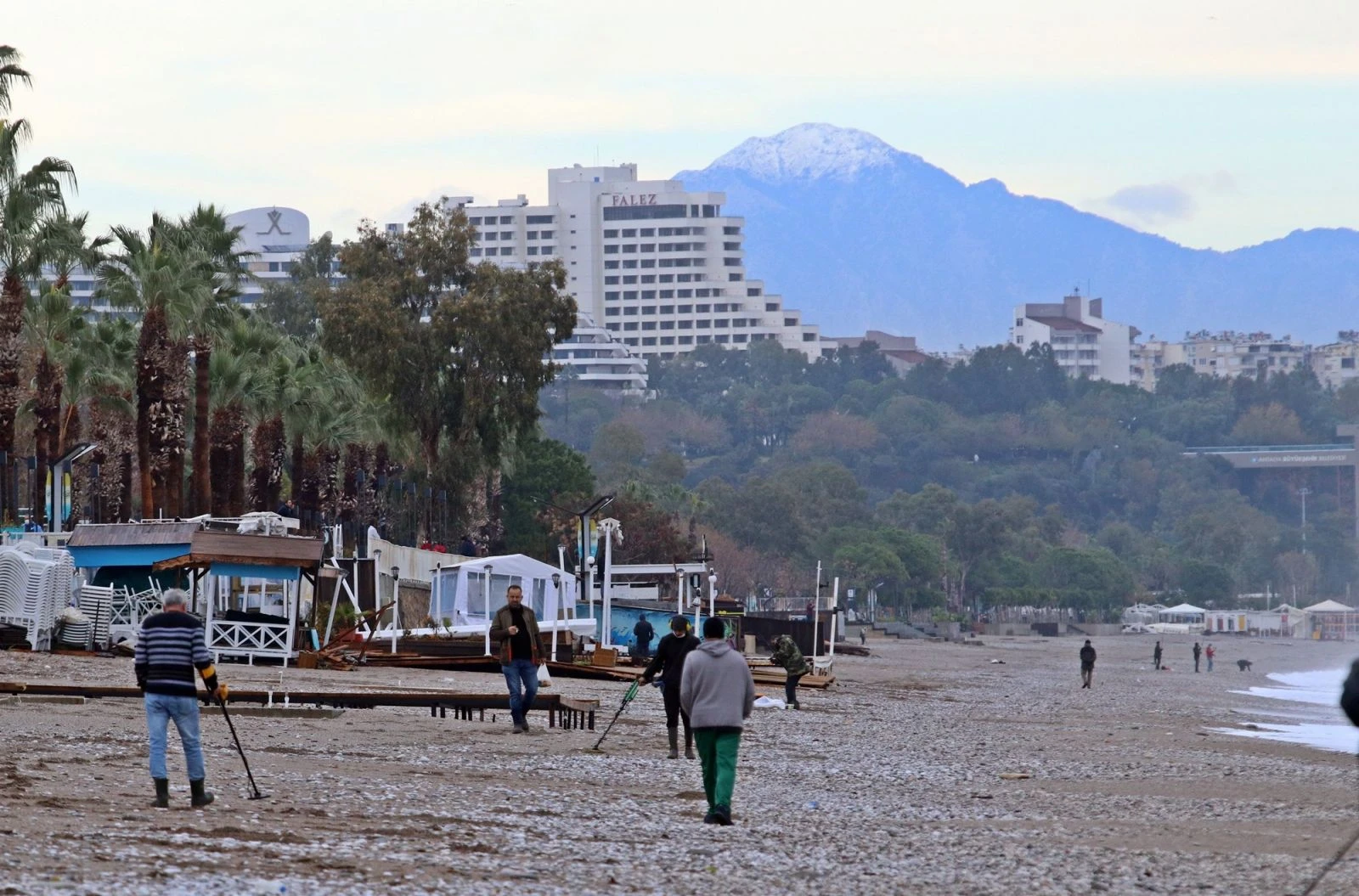 Antalya’da 3 gündür etkili olan sağanak yağış ve rüzgar nedeniyle denizde dev dalgalar meydana geldi. Yağışlı havanın bugün kenti terk etmesinin ardından ise dünyaca ünlü Konyaaltı Sahiline define avcıları akın etti. Ellerine dedektör alan çok sayıda kişi, her yaz binlerce turisti ağırlayan sahile gelerek altın ile değerli maden arayışına çıktı. Elektronik cihazın çıkardığı sesleri kulaklıkla dinleyerek sahil bandını tarayan define avcıları, sinyalin geldiği noktayı kazıp madeni paralara ulaştı. İşlerinin pandemiden dolayı kesat gittiğini belirten bir define avcısının ise tatilcilere çağrısı güldürdü.