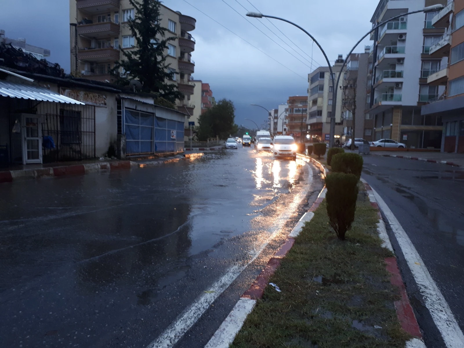Kentte sabaha karşı başlayan ve yer yer devam eden yağış nedeniyle cadde ve sokaklarda su birikintileri oluştu.