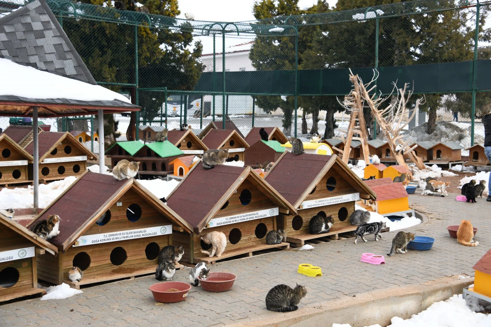 Alttan ısıtmalı bakım odaları, yarı açık gezintili çoklu köpek bakım bölümleri, kulübeleri, kedi evi, sosyal tesisler, pet gösteri ve gezinti alanıyla sahipsiz canlara hizmet veriliyor.