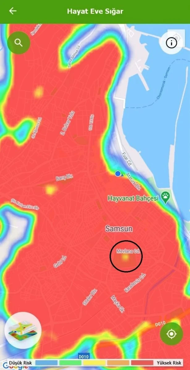 1 hafta önce bazı noktalarda yeşil alanların olduğu Samsun’da, şu an mezarlıklar dahi ‘kırmızı’ rengine döndü. Geçen hafta yoğunluk haritasında kırmızının hâkim olduğu, bazı yerlerde ufak yeşil noktaların olduğu gözlemlenebiliyordu. Bugün korona virüsü haritası risk yoğunluğunun artmasıyla az olan yeşil alanlar 'kıpkırmızı' hale geldi.