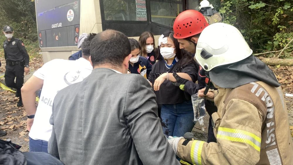 Sarıyer'de meydana gelen olayda, Murat Tekoğlu yönetimindeki 34 M 5148 plakalı yolcu minibüsü, yağış nedeniyle kayganlaşan yolda kontrolden çıktı.