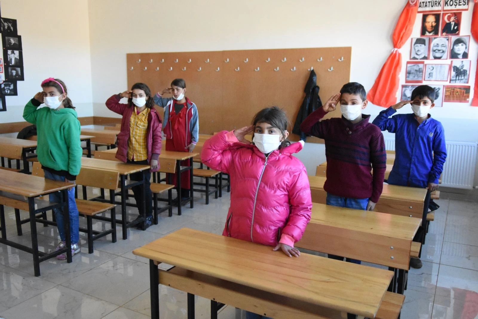 Öğrenciler şehit öğretmenin fotoğrafını ay yıldızlı bayraklarla süsleyerek, öğretmenlerinin kanını yerde bırakmayan güvenlik güçlerine asker selamıyla minnet duygularını iletti. Öğrenciler, okunan İstiklal Marşı'nın ardından ‘En büyük asker bizim asker’ diye haykırdı.
