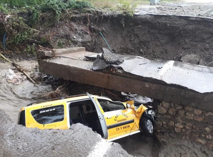 Öte yandan sel nedeniyle Bartın Karabük yolu Bahçecik mevkiinde yollar göçerken araçlar ağır hasar aldı.