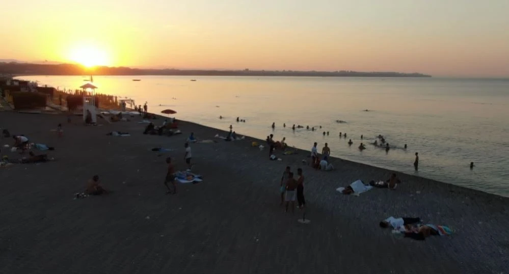 Sabahın erken saatlerinde gün doğumu ile birlikte uyanan vatandaşlar, gözlerini açar açmaz denize girdi. Sahilde uyumak için gelen insan yoğunluğu ise dikkat çekti.