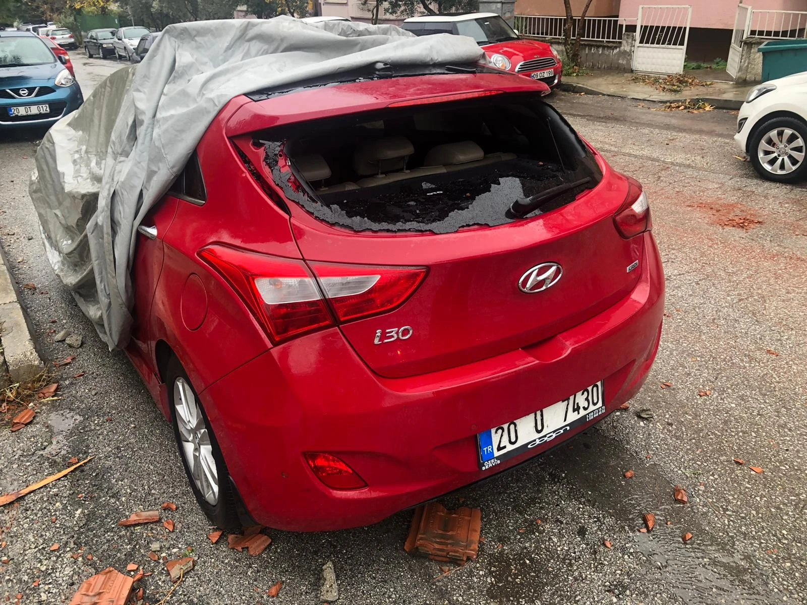 Çatının devrildiği yerde park halinde bulunan ve sahibinin ismi öğrenilemeyen 20 U 7430 plakalı otomobil de uçan çatıdan nasibini aldı. Camları kırılan otomobilde maddi hasar meydana geldi.