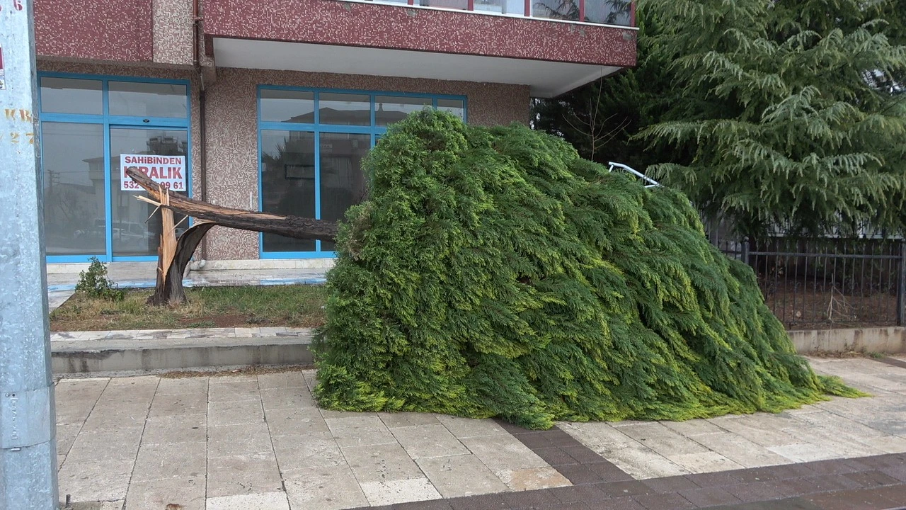 Merkezefendi ilçesi 29 Ekim Bulvarı üzerindeki kaldırımda bulunan bir ağaç, rüzgara dayanamayarak kırılıp yola devrildi.