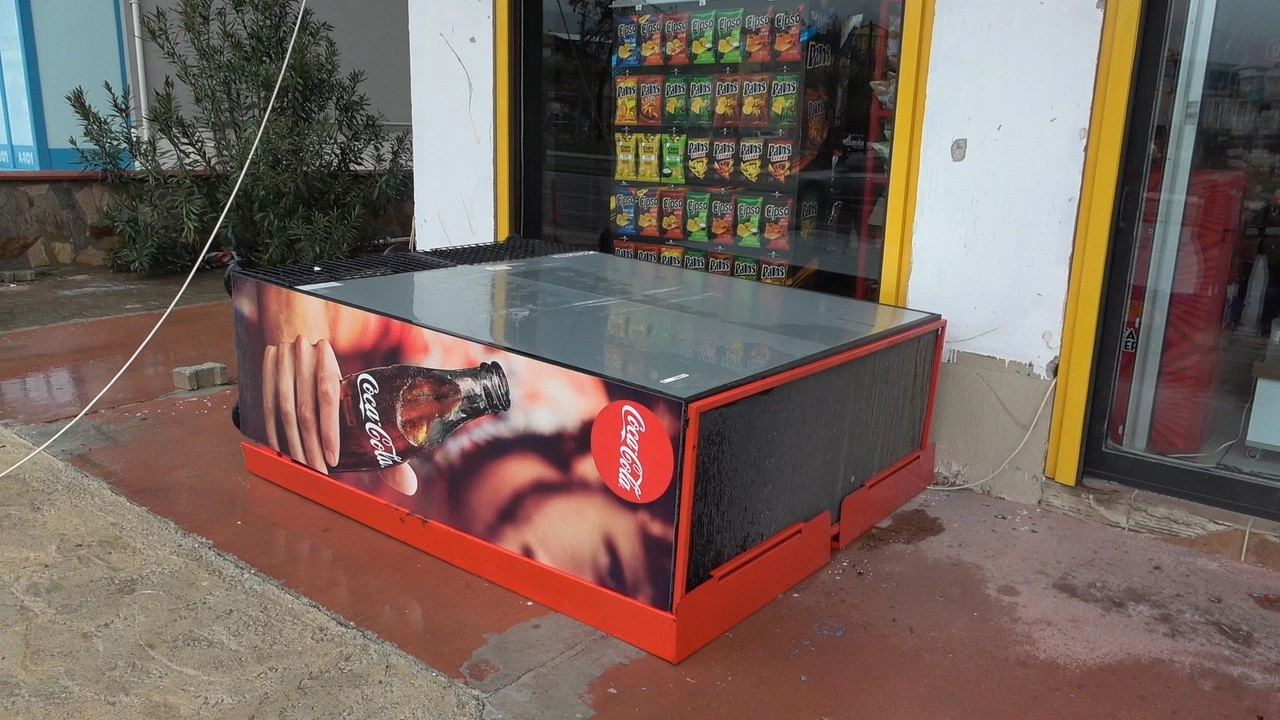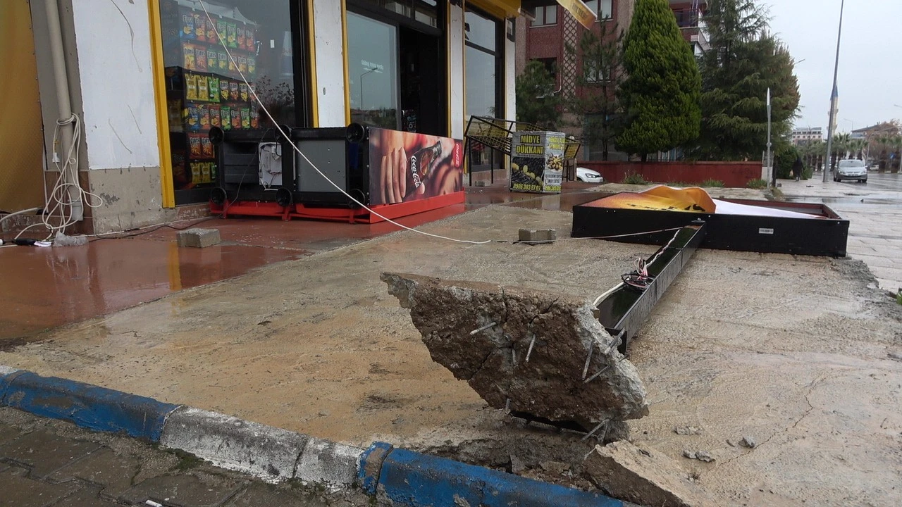 Osman Özer isimli vatandaşa ait marketin tabelası ile dükkanın önünde bulunan buzdolapları da devrildi.