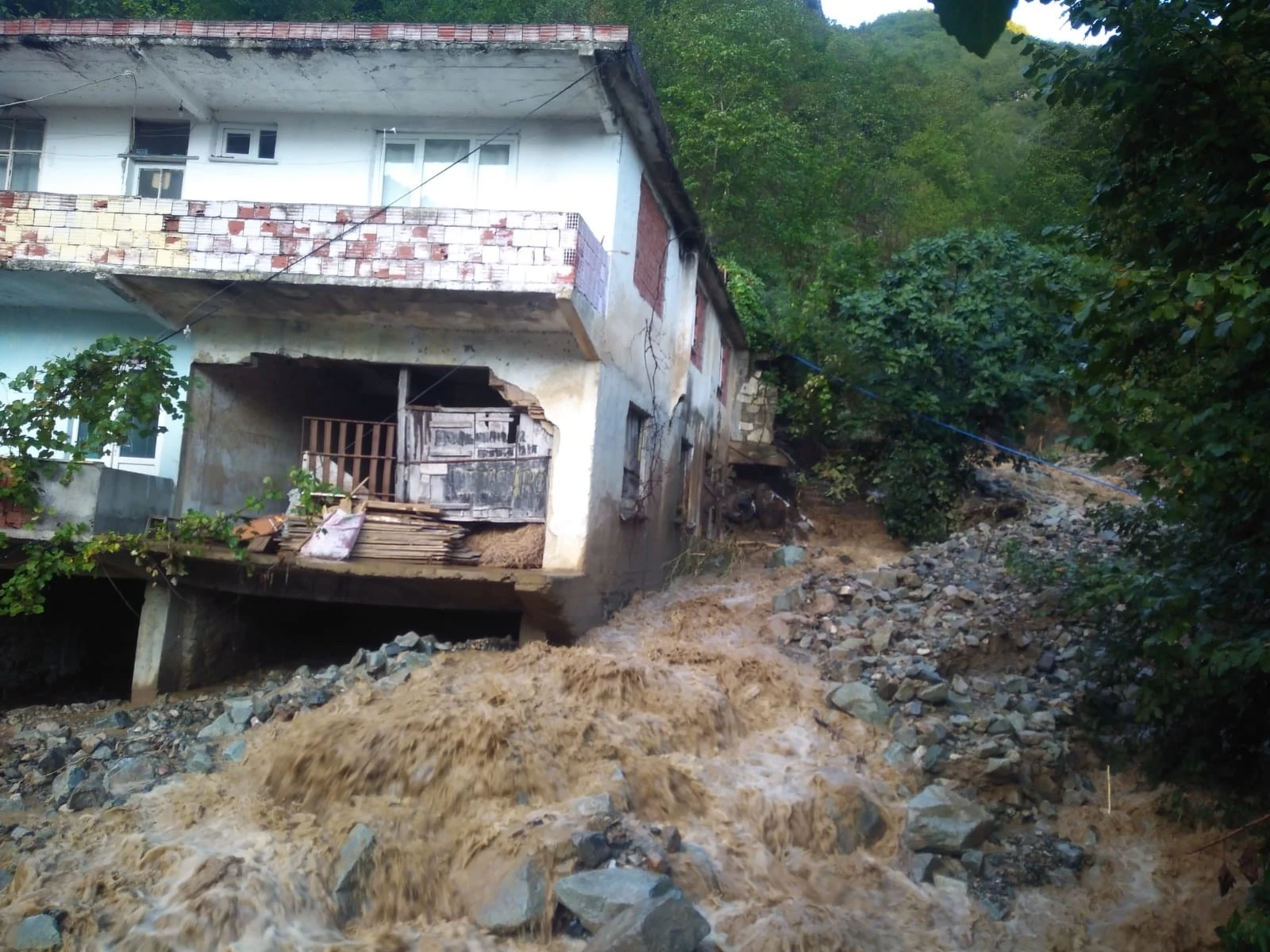 Dün gece etkili olan şiddetli yağış sonrası Trabzon'un Araklı ilçesi Dağbaşı mahallesinde evleri su bastı. Yağışlar sonrası bir taş ocağında yaşanan heyelan sonrası Araklı-Bayburt karayolu ulaşıma kapandı.