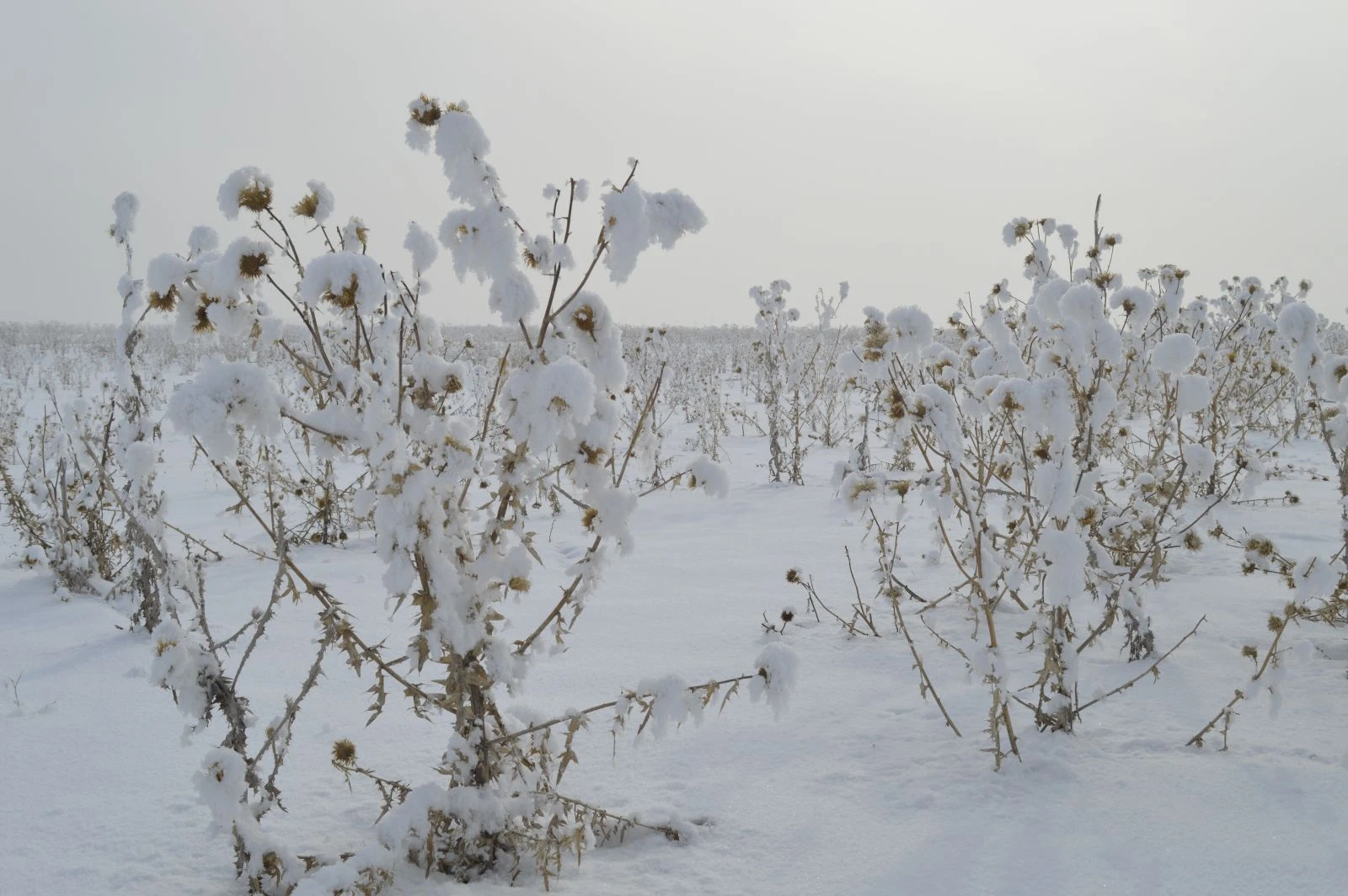 Öte yandan, soğuk hava ile birlikte ağaç ve tarlalardaki diken kalıntılarına düşen kırağı, görsel şölen oluşturdu.