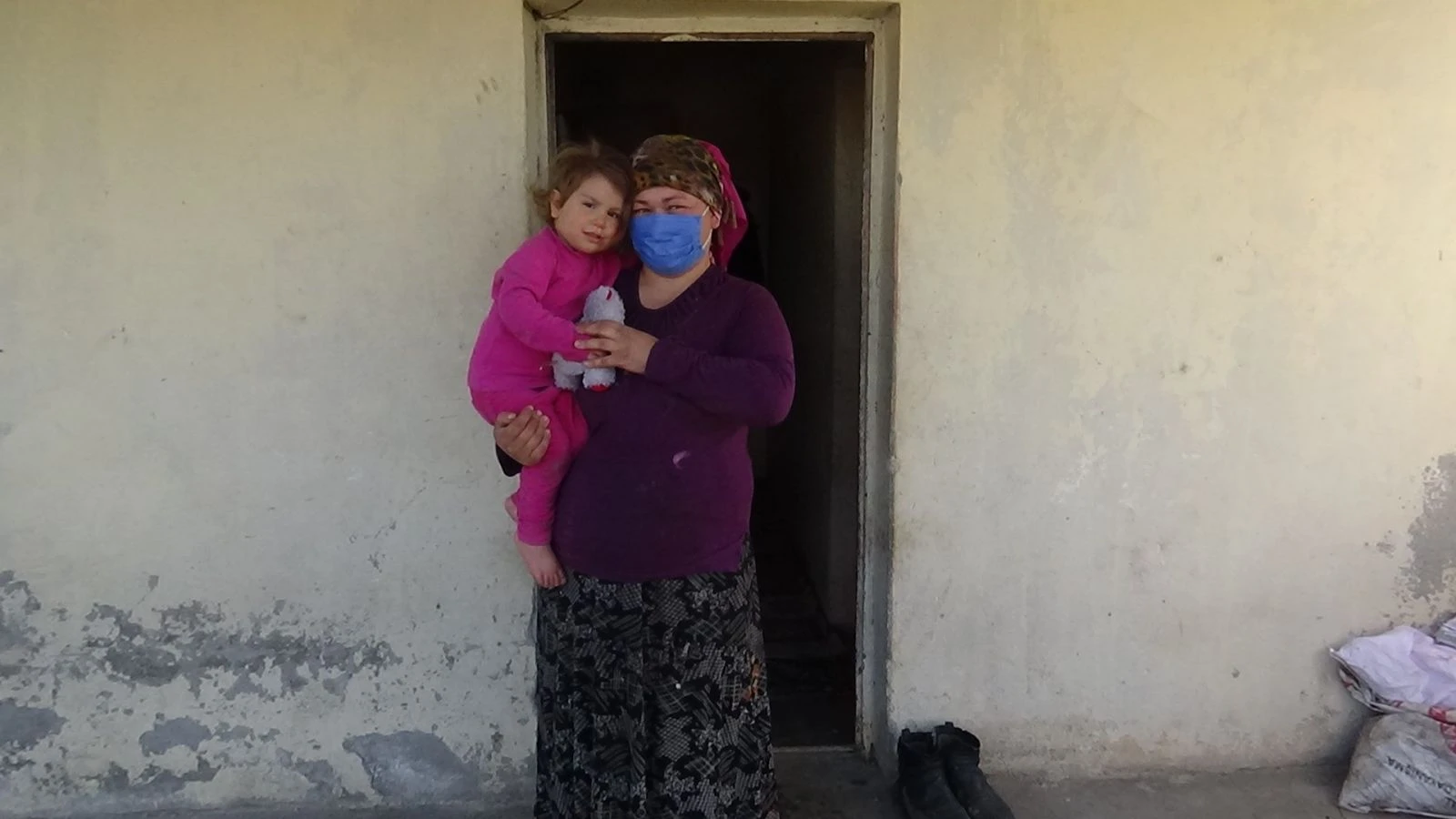 Kanser hastası olan Esin Şahran tedavi göremediği için 2 ayılık bebeğine anne sütü veremediğini ifade ederek, "2 yıldır kanser hastasıyım. Tedavi olamıyorum. Kirayı ödeyemediğimiz için ev sahibi bizi evden çıkardı. Tarlanın ortasında bulduğumuz kapısı, penceresi, suyu, elektriği olmayan yerde burada 2 çocuğumla ortada kaldık. İş olmadığı için eşim iş bulamıyor. Ben yetkililerden yardım istiyorum. 2 aylık bebeğim var kanser hastası olduğum için bebeğime anne sütü veremiyorum. Geceleri çocuğum aç yatıyor bana yardım edin" dedi.