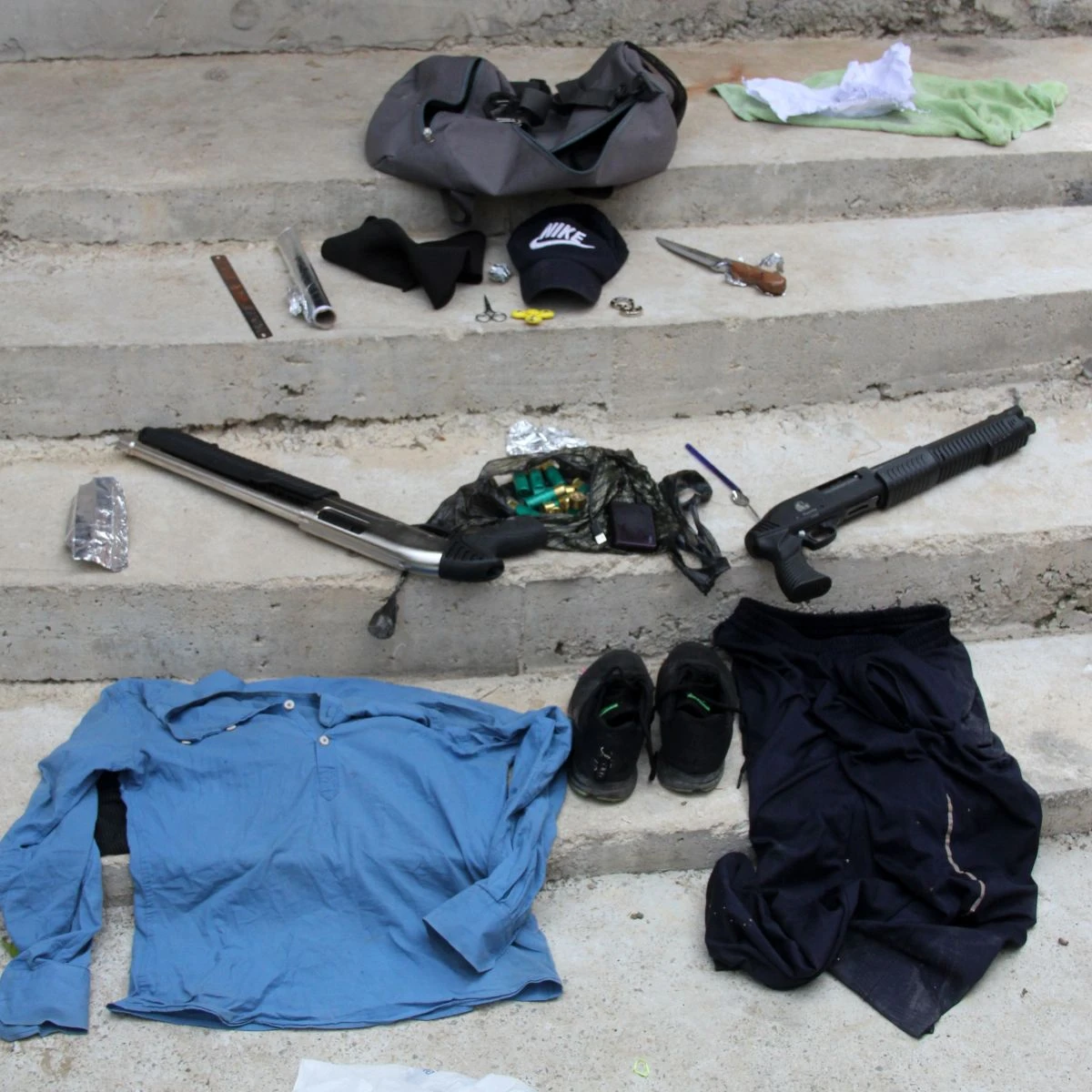Polis silah ve eşyalara el koyup kriminal inceleme için emniyete götürdü.