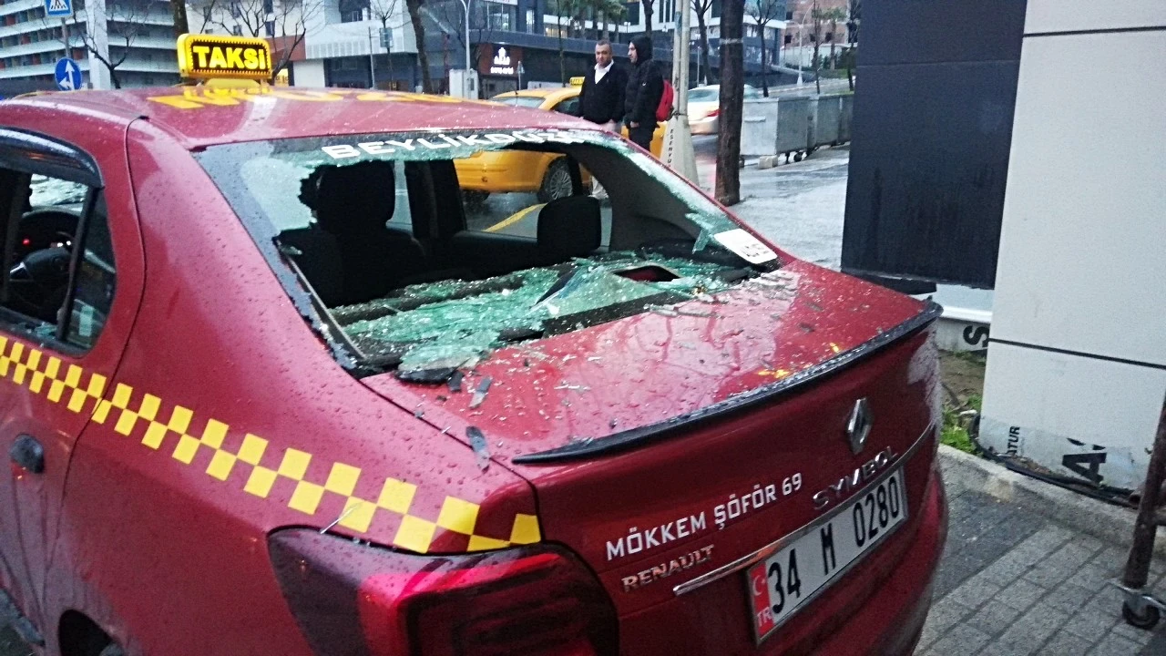Taksilerin camlarını kaldırım taşı ile kırdılar