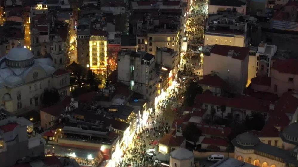 Taksim Meydanı ve İstiklal Caddesi, eski günlerini aratmadı.İstanbul'da yılbaşı kutlamalarının en kalabalık noktalarından biri olan İstiklal Caddesi'ne vatandaşlar akın etti.