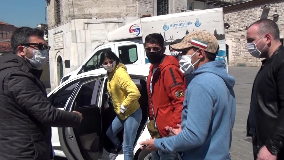İstiklal Caddesinin girişinde bekleyen, biri kadın beş kişilik yabancı uyruklu grubun, Korona virüs tedbirlerini hiçe sayarak sosyal mesafe kuralına uymadıkları ve maske takmadıkları görüldü. Turistlerin kurallara uymadığını fark eden vatandaşlar durumu polise bildirdi. Güven timleri ekipleri kısa sürede turistlerin bulunduğu yere geldi. Polisi bir anda karşısında gören turistlerden biri montuyla ağzını kapatmaya çalıştı.