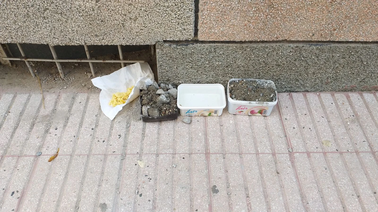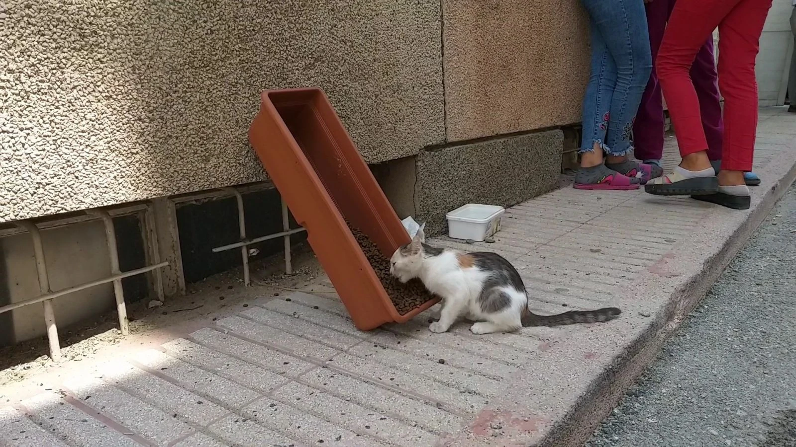 Daha sonra beton dökülen mama kaplarını çöpe atan Helvacıoğlu, getirilen mama kabını sokağa yerleştirerek kabın içine mama koydu.