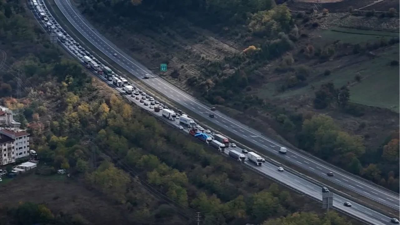 Kaza nedeniyle otoyolda uzun araç kuyrukları oluştu. Ekiplerin yola saçılan malzemeleri kaldırma ve yolu tamamen trafiğe açma çalışmaları sürerken, trafik bir süre iki şeritten kontrollü olarak sağlandı. Kazanın ardından oluşan araç kuyruğu ve ekiplerin çalışmaları havadan dronla görüntülendi.