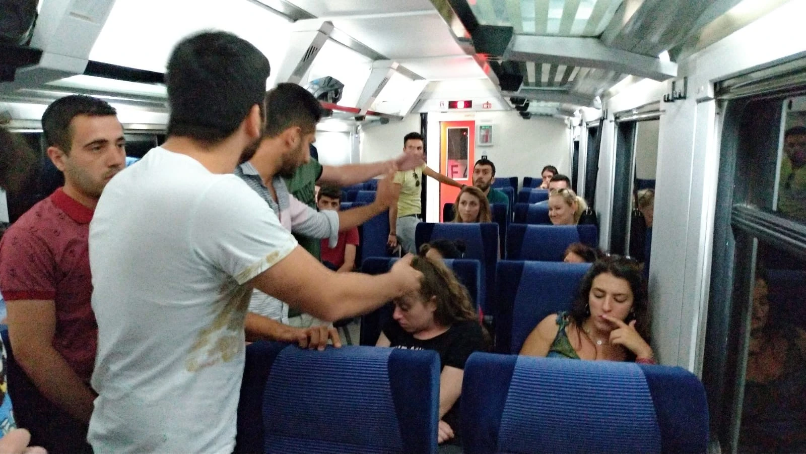 Yanında taşıdığı evcil hayvanı ile birlikte trene binerek yolculuk yapmak isteyen kadın kondüktör tarafından indirilmek istenince trenin 2 saat gecikmesine ve yüzlerce kişinin mağdur olmasına neden oldu.
