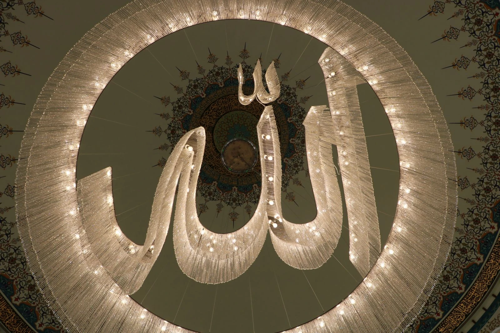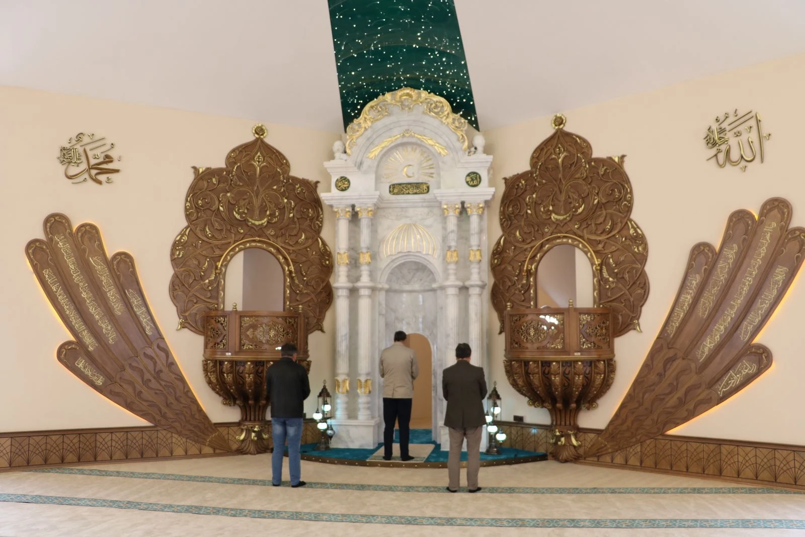 7 bin metrekare alana kurulan ve yıldız şeklindeki kapalı alanında 3 bin 500, hilal şeklindeki avlusunda ise 5 bin kişinin namaz kılabileceği ay yıldızlı cami içerisinde bulunan Allah lafızlı avizesiyle de dikkat çekiyor.