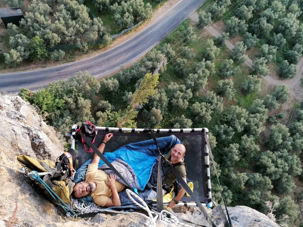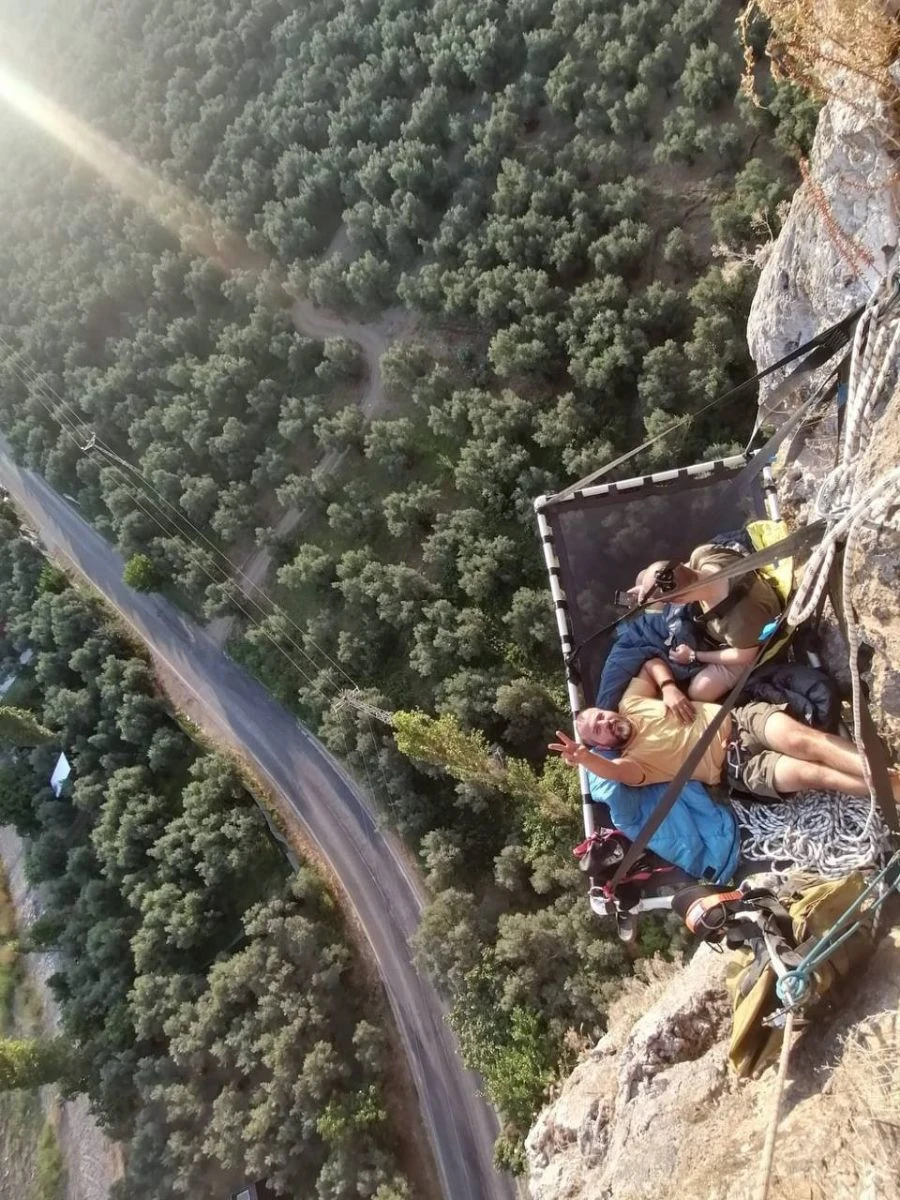 Maceraperest dağcılar, geceyi tırmandıkları dev kayada geçirdi. Kurdukları hamak ile herkesi şok eden dağcılar, bu anları sosyal medya hesaplarında paylaşınca beğenme rekoru kırdılar.