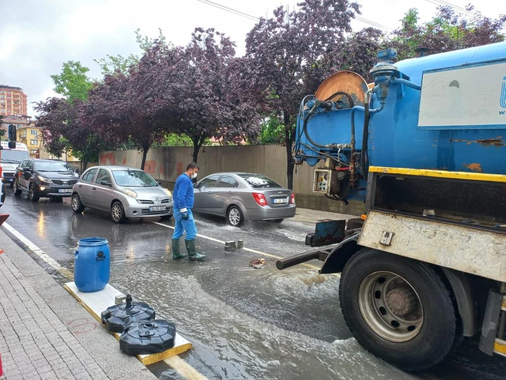 Sabah saatlerinden itibaren etkili olan şiddetli yağış nedeniyle rögarlar taştı ,yollarda su birikintileri oluşurken, sürücüler zor anlar yaşadı.