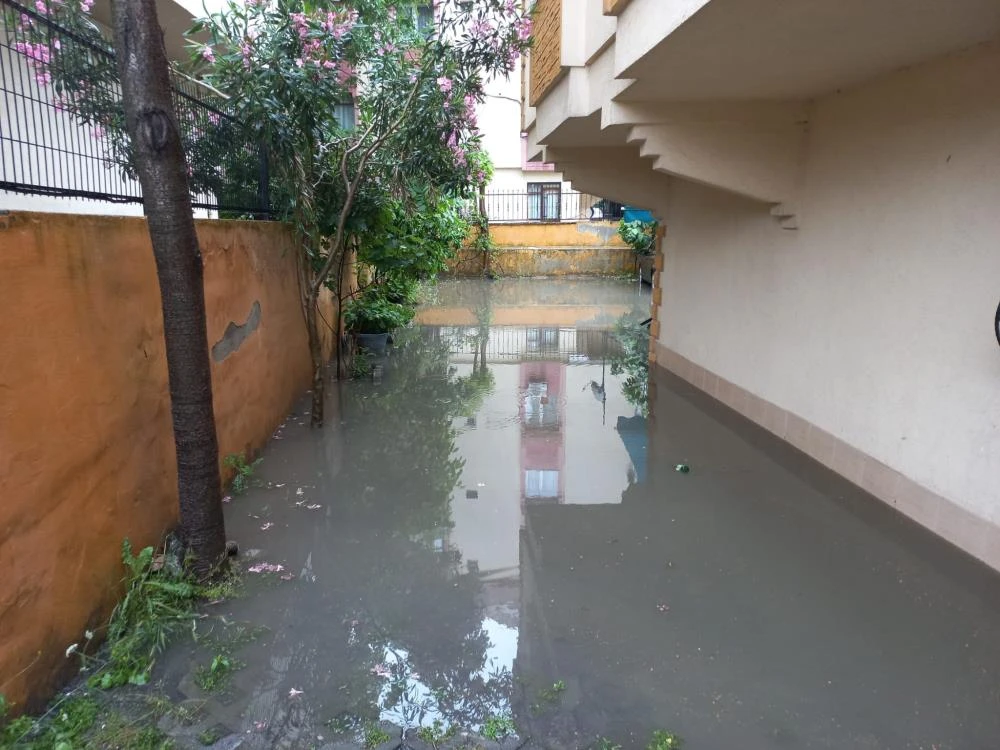 Sabahın erken saatlerinden itibaren şiddetini azaltmadan devam eden sağanak yağış nedeniyle Bulgurlu Mahallesi Kurudere Sokak üzerinde bulunan bir evin bahçesini su bastı.
