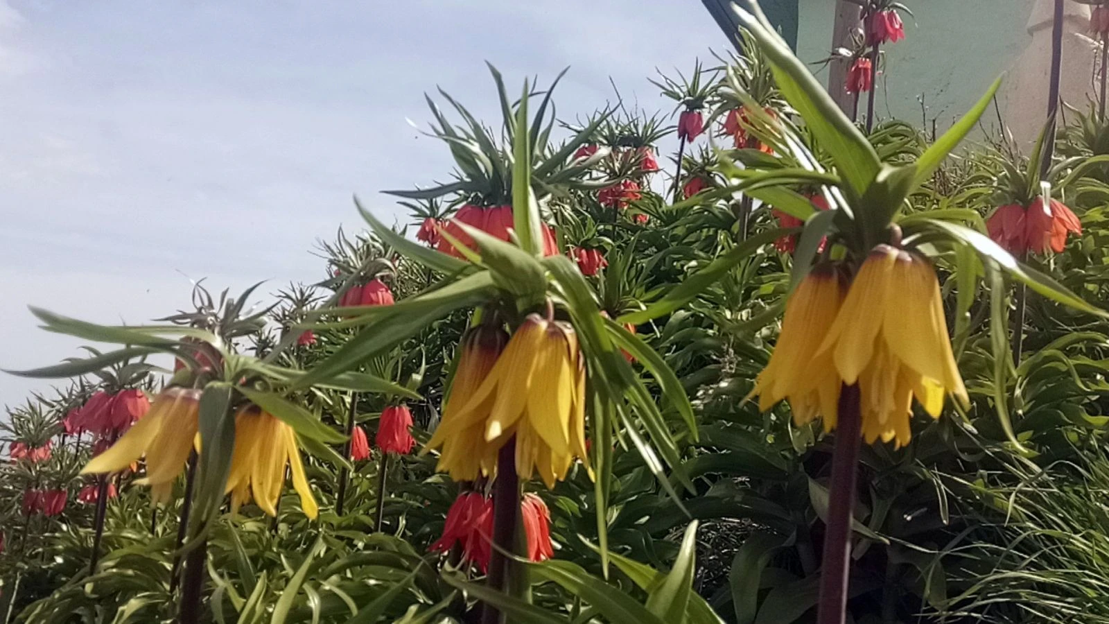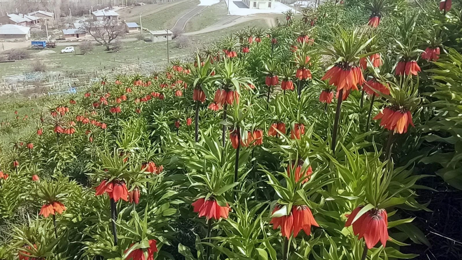 Havaların ısınmaya başladığı Van'ın Gevaş ilçesinde ters laleler renk renk çiçek açtı.