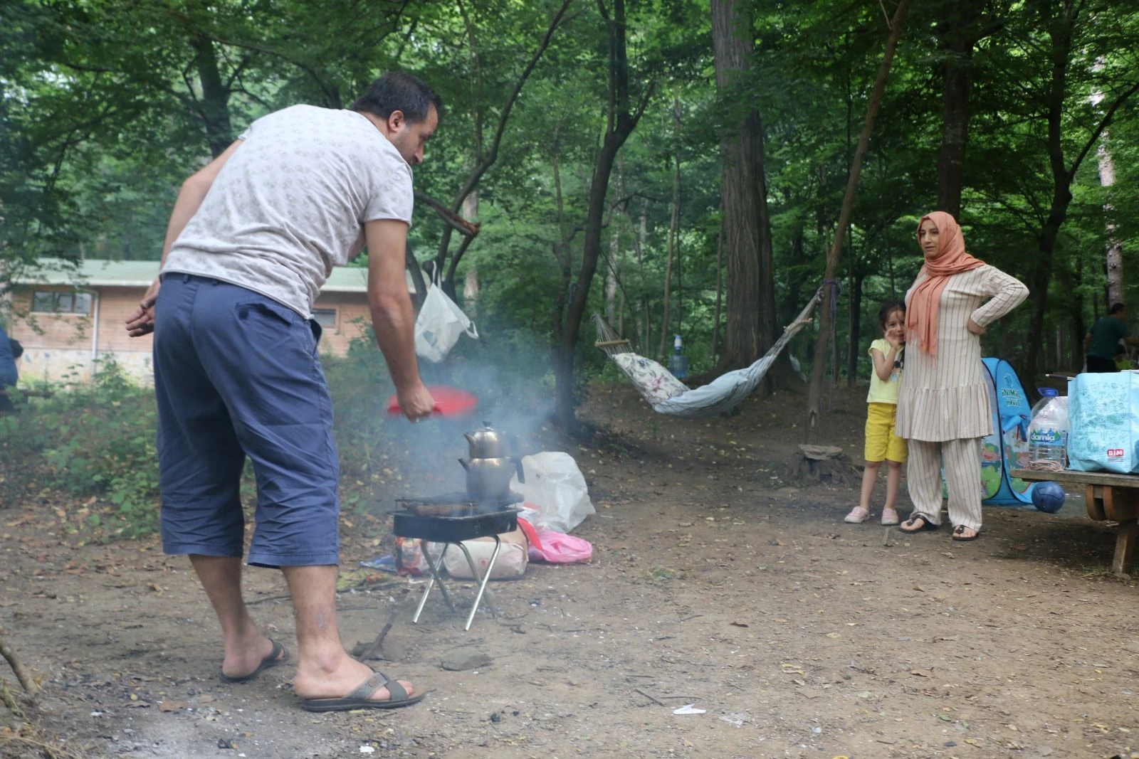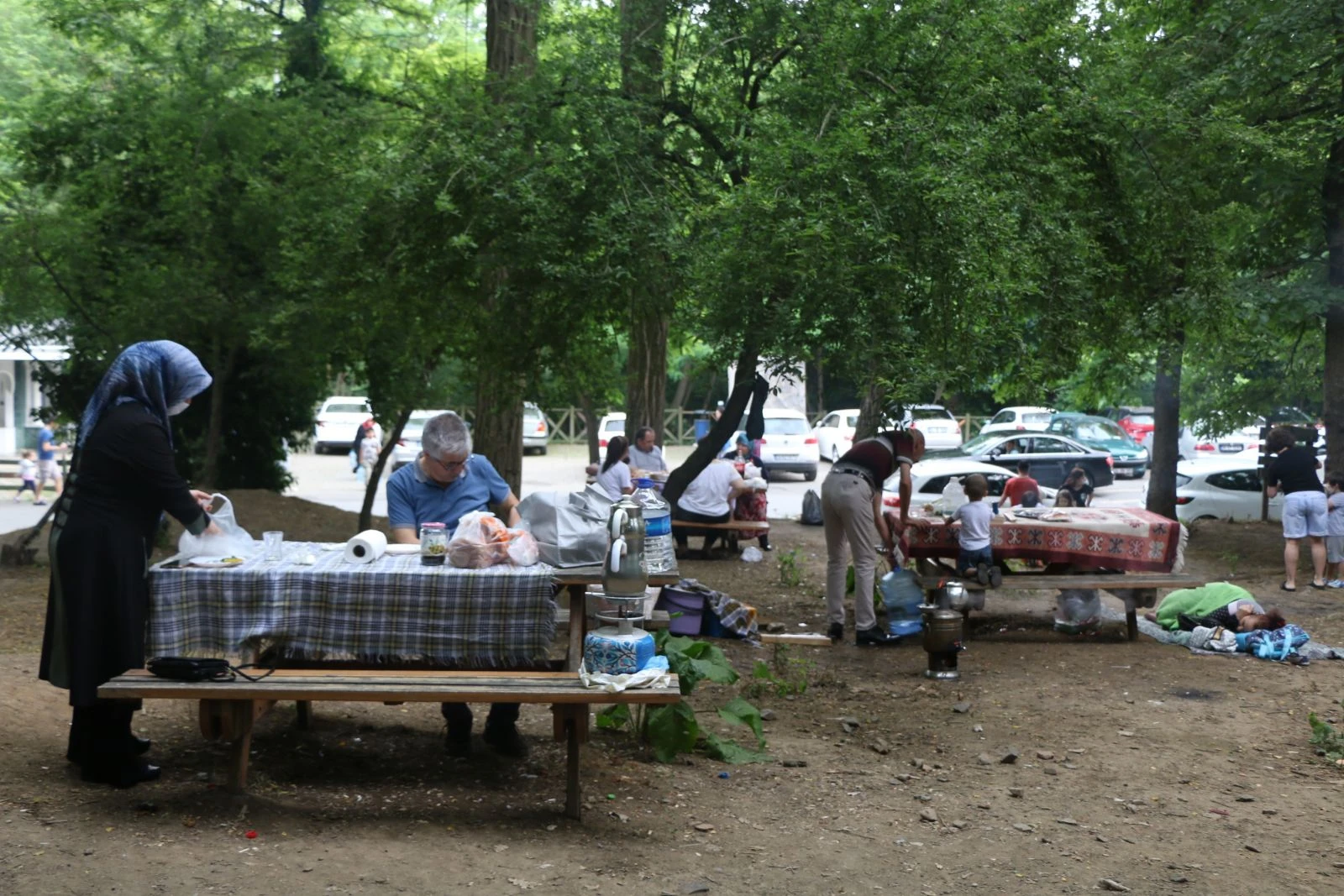 Orman girişi otoparkında metrelerce araç kuyruğu oluştu. Mesire alanını dolduran vatandaşlar, banklarda kurdukları masalarda yemeklerini hazırladı. Mangallarını yakmak için sabahın erken saatlerinde ormana gelen vatandaşlar, daha sonra hamaklarında uzanarak dinlendi.