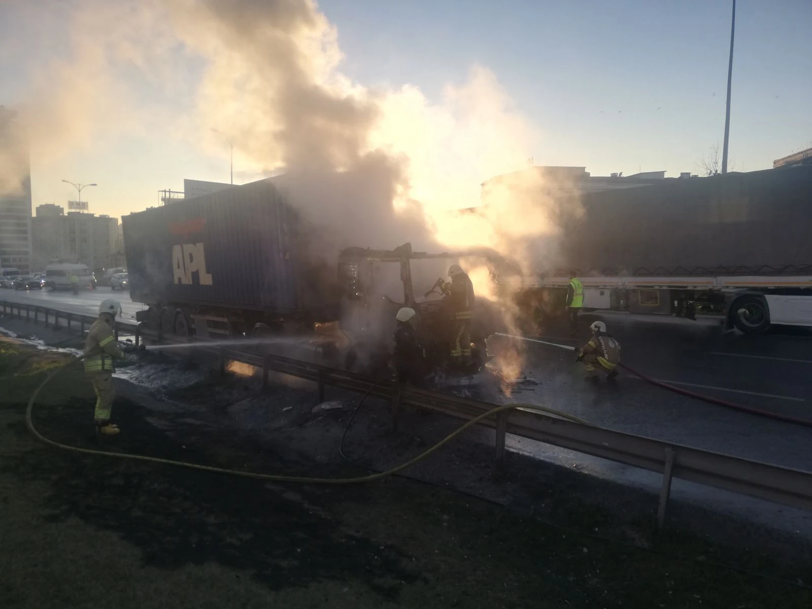 İhbar üzerine olay yerine çok sayıda itfaiye ekibi sevk edildi. Tırın kabin bölümü alev alev yandı. İtfaiye ekiplerinin müdahalesi ile tır söndürüldü.