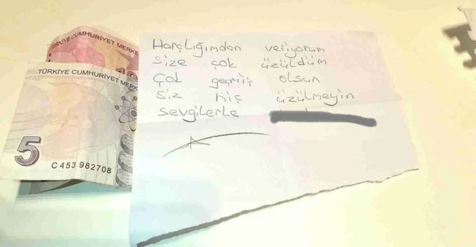 Görevliler aile gittikten sonra paketi kontrol ederken, paketin içinde yazan not duygulandırdı. Görevlilerin açtığı notun içinde küçük kızın biriktirdiği para olan 15 TL harçlığı koyduğu görülürken notta da, “Harçlığımdan veriyorum. Size çok üzüldüm. Çok geçmiş olsun. Siz hiç üzülmeyin. Sevgilerle” yazdığı görüldü. Paketi bıraktıktan sonra ailesiyle birlikte belediyeden ayrılan küçük kızın kim olduğu merak konusu oldu. Öte yandan da belediye bu duygulandıran durumu belediyenin sosyal medya hesabından, “Emanetini en kıza zamanda ulaştıracağız koca yürekli kızımız” şeklinde duyurdu.