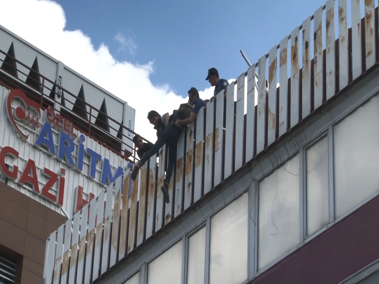 Akşam saatlerinde merkez Nilüfer ilçesinde İl Emniyet Müdürlüğü’nün hemen karşısındaki inşaat halindeki iş merkezinin 9. katına tırmanan Güllüoğlu için polis, itfaiye ve ambulans ekibi seferber oldu. Olay yerine gelen itfaiye ekipleri hava yastığı açarak tedbir aldı. Güllüoğlu ile konuşmak için müzakereci polisler de binaya gelerek 9. kata çıktı. Bu esnada yoldan geçen bir iş adamı maddi sıkıntı çektiğini öne süren Gülloğlu’na para vereceğini söyledi.