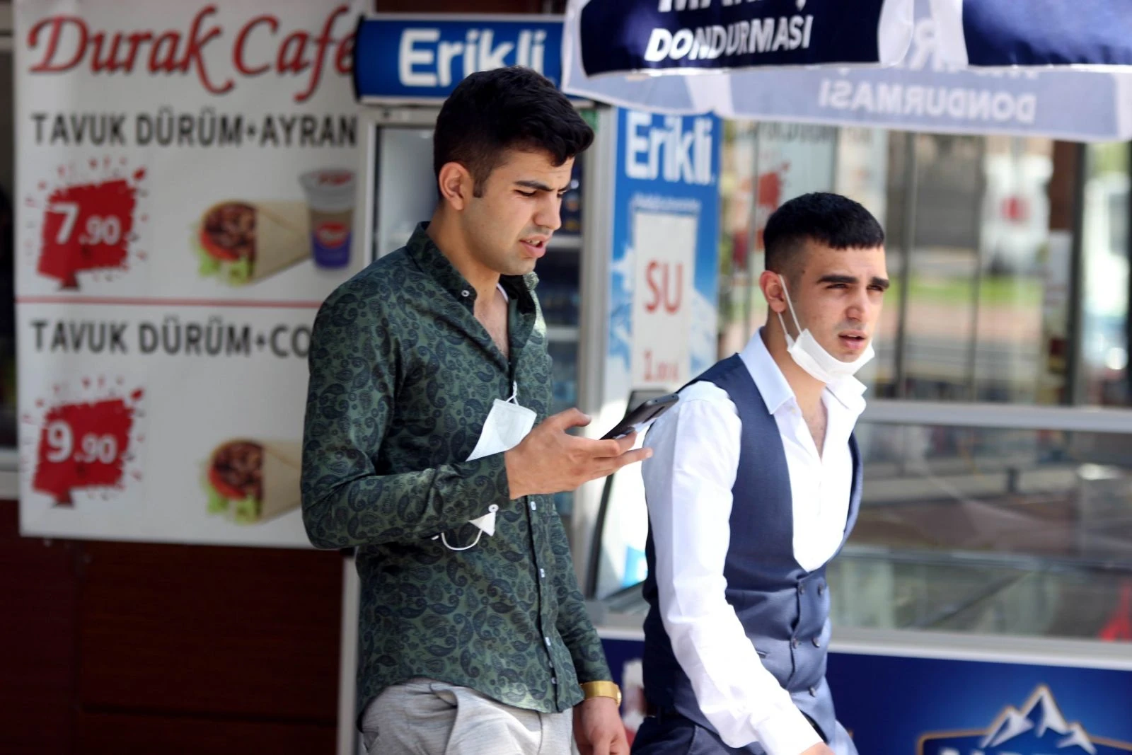 Uzmanlar tarafından normalleşme sürecinde Kovid-19’la mücadelede maske, sosyal mesafe ve hijyenin oldukça önemli olduğunun sürekli belirtilmesine rağmen kentteki bazı vatandaşlar, maskeleri bileklik gibi bileklerine, kolye gibi boyunlarına, küpe gibi kulaklarına takarak sokakta dolaştıkları görüldü.